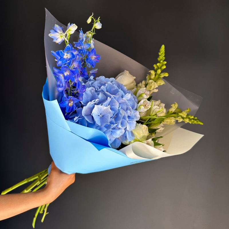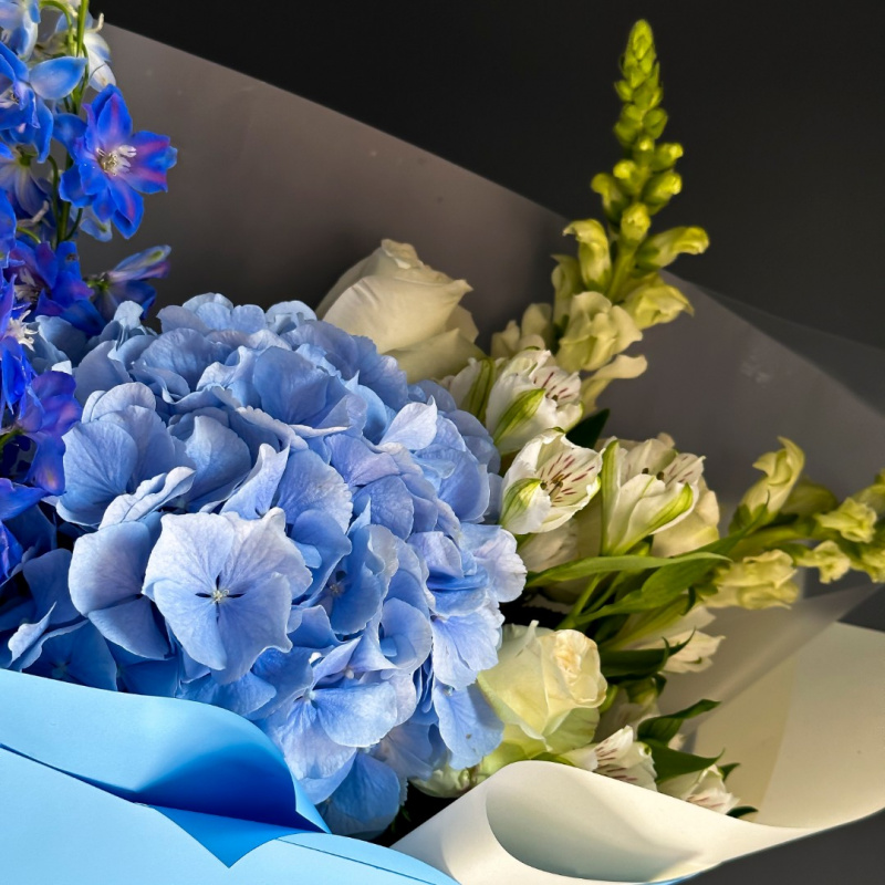 Нежная, воздушная голубая гортензия. Чувственный букет в стильной упаковке